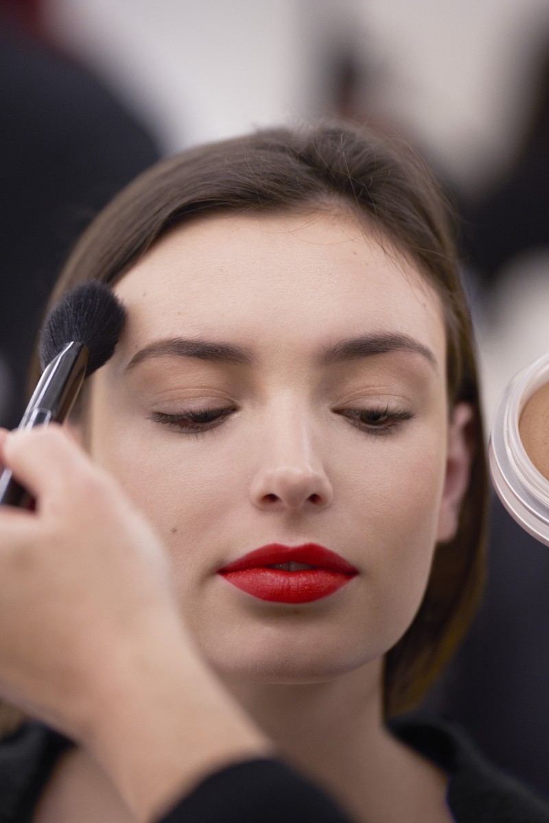 Визажисты использовали глянцевые и матовые красные и красно-оранжевые оттенки помад и блесков для губ. При этом глаза и даже ресницы девушек оставались нетронутыми. Идеально ровный тон, слегка подчеркнутые брови, едва заметные розовые или персиковые румяна и акцент на губы — вот, как будет выглядеть мейк весны 2023. И чтобы не отвлекать от него внимания, делайте строгую прическу с гладкими прямыми волосами или низктий хвост на прямой или косой пробор.