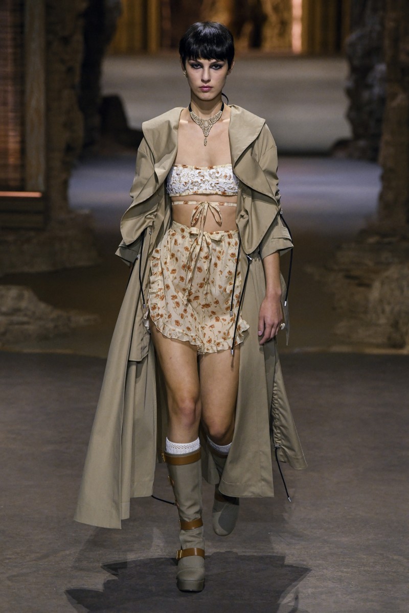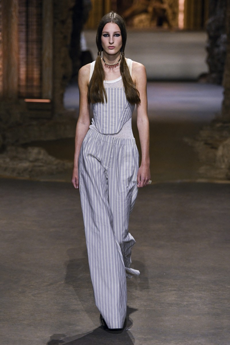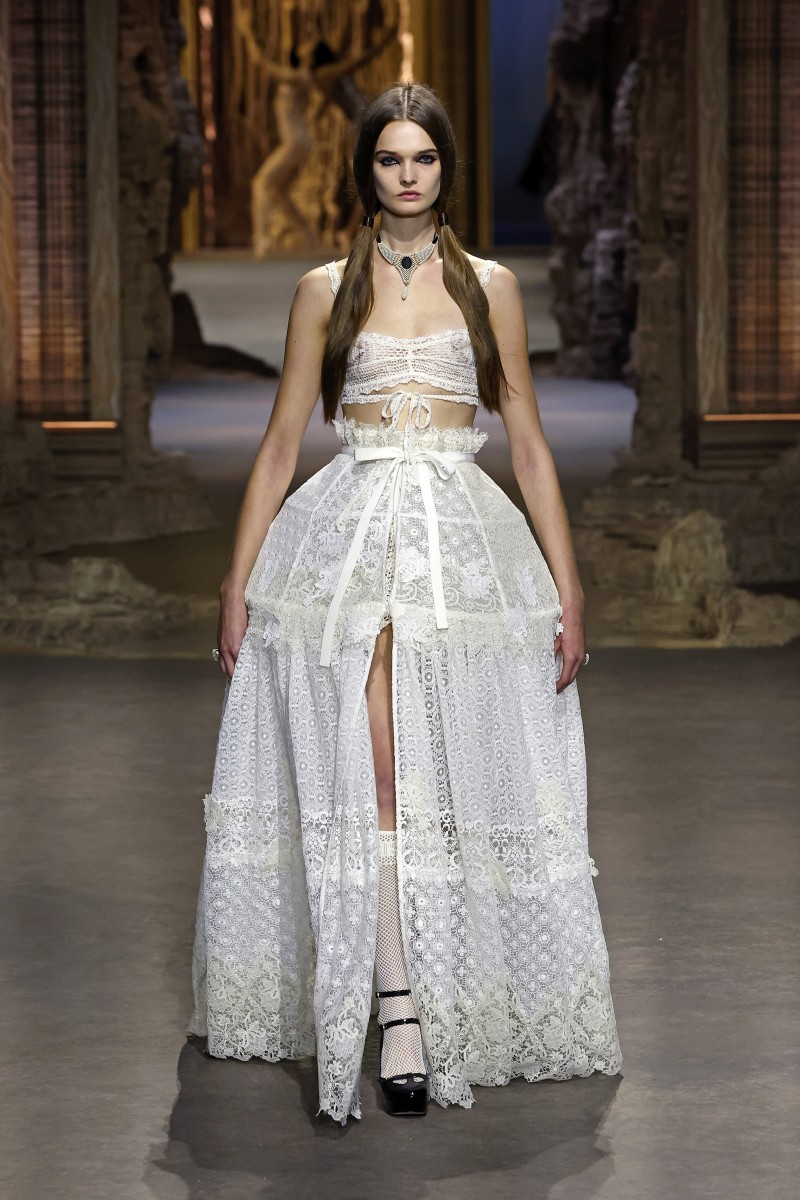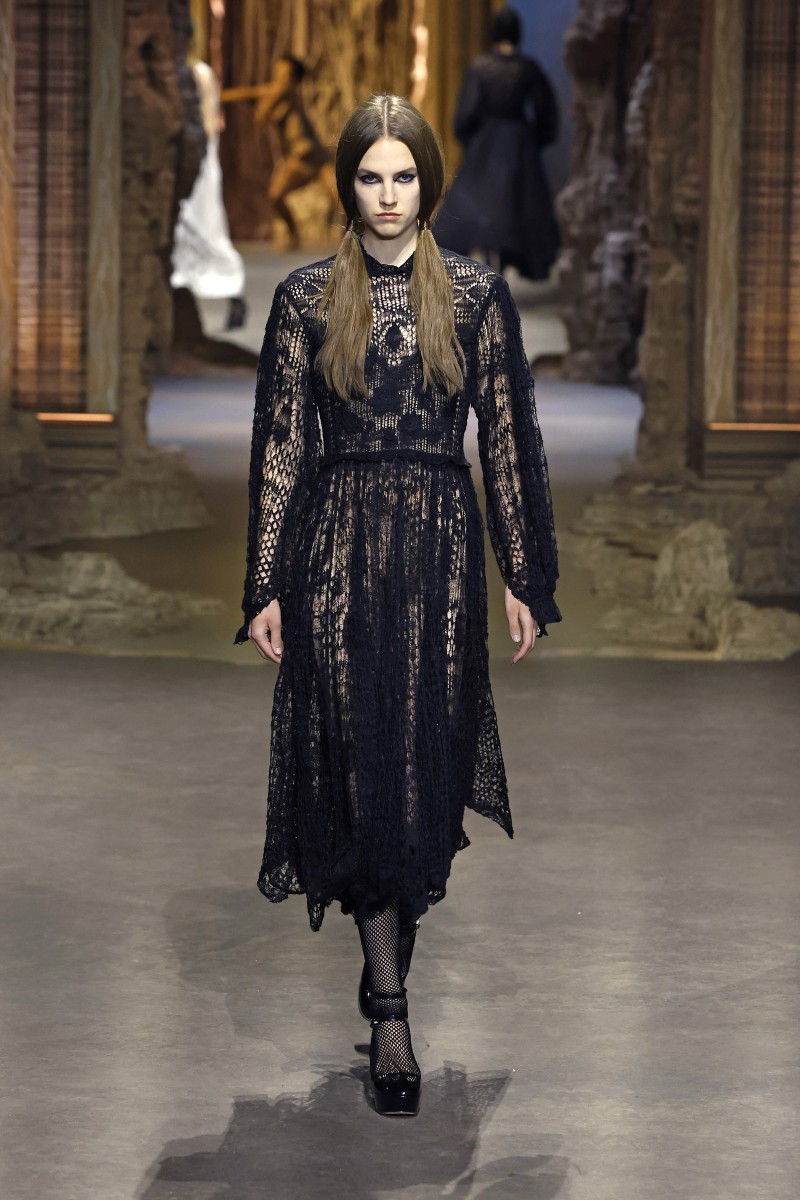 «Идея заключалась в том, чтобы поиграть с отсылкой того времени и понять, как власть и мода находились в диалоге друг с другом», — отметила Мария Грация Кьюри. И у нее это, кажется, действительно получилось. Модели выходили на подиум в одежде с символами придворного стиля, такими как корсеты, кринолины, кружево и объем. При этом главными цветами коллекции стали черный и идеально белый, иногда разбавленные бежевыми оттенками и цветочными принтами.